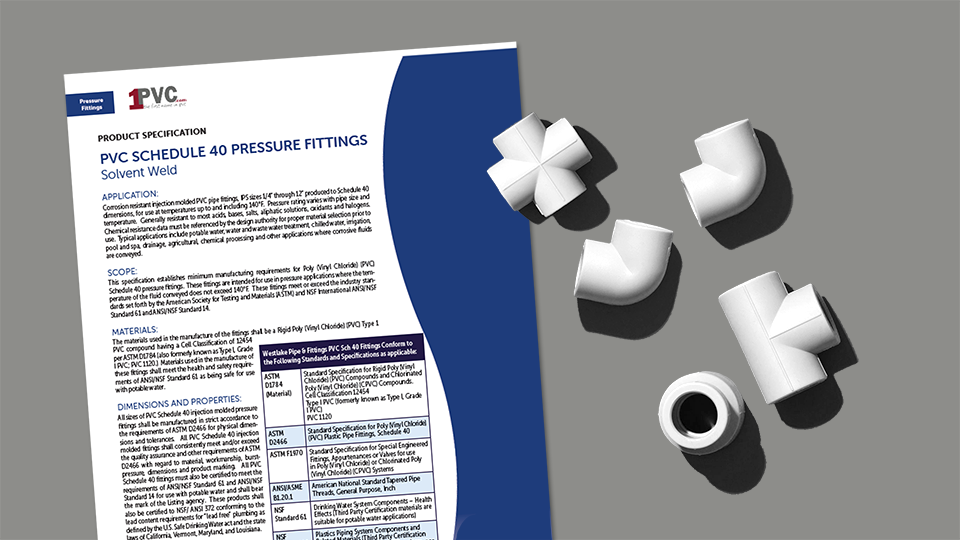 For over 15 years, 1PVC.com has been serving the industry with PVC fittings in PVC Schedule 40, Schedule 80, and CPVC. Our goal is to provide you with an easy, quick, and cost effective way to purchase your PVC fittings online with upfront pricing.
